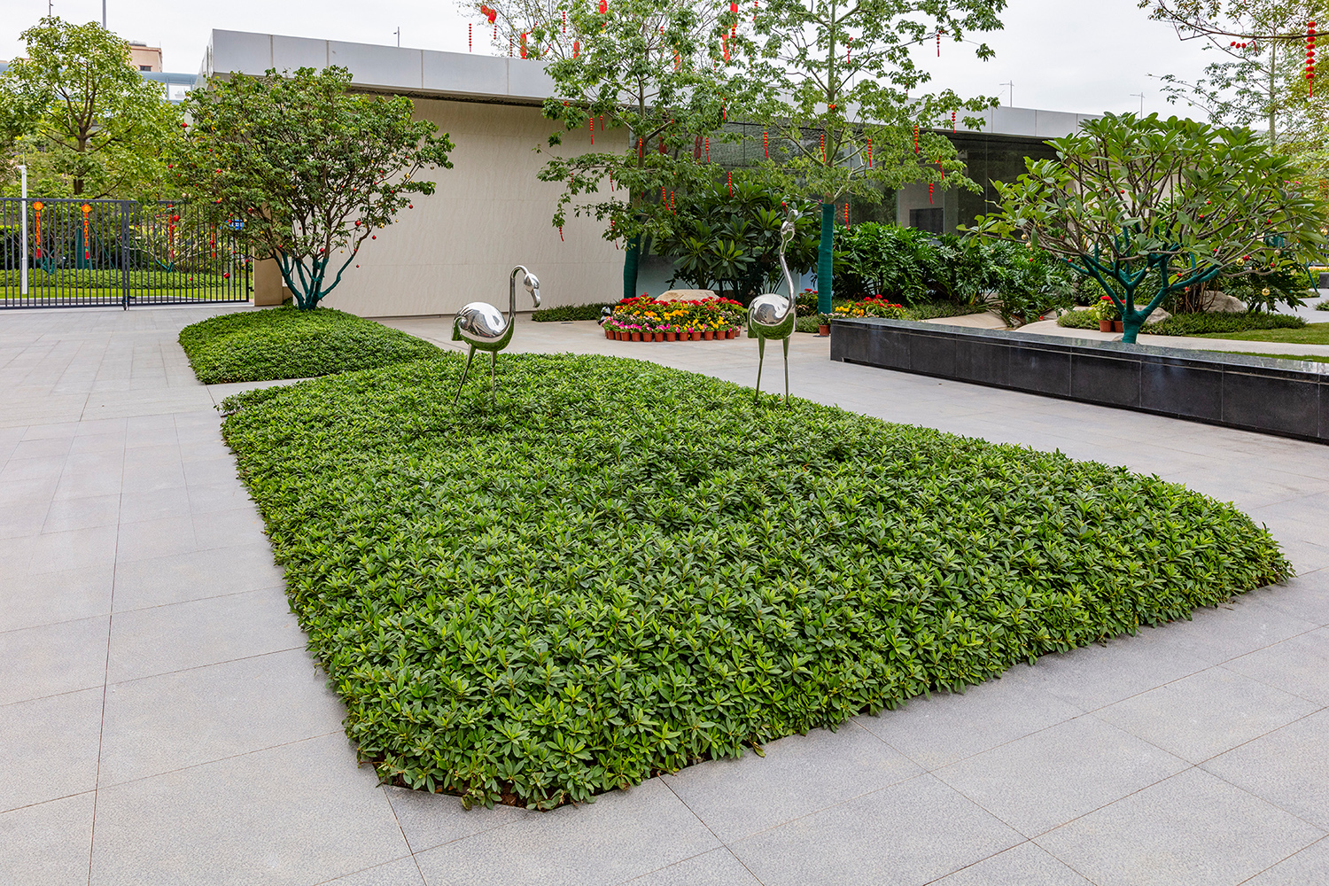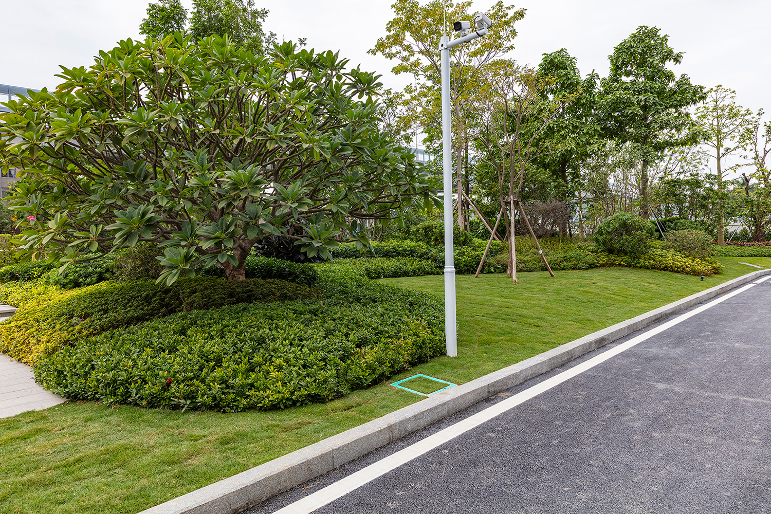 整體景觀風(fēng)格為現(xiàn)代簡(jiǎn)約、通透規(guī)整為主,項(xiàng)目小,功能全。園建工程在開(kāi)闊的空間運(yùn)用幾何元素劃分各功能分區(qū),鋪裝面整體色調(diào)協(xié)調(diào)統(tǒng)一,架空層休閑區(qū)和兒童活動(dòng)區(qū)色彩豐富;綠化分布通透清新,疏林草地注重地形與喬木空間關(guān)系,運(yùn)用喬木組建天際線和深景關(guān)系,地被色塊注重幾何關(guān)系,采用二級(jí)微地形強(qiáng)調(diào)下層苗木的視覺(jué)效果,簡(jiǎn)約而不雜亂,精致而不單一。此風(fēng)格對(duì)后期園區(qū)養(yǎng)護(hù)和安全管理都有很大好處,避免了園林植物帶容易藏污納垢和蚊蟲(chóng)滋生的問(wèn)題。