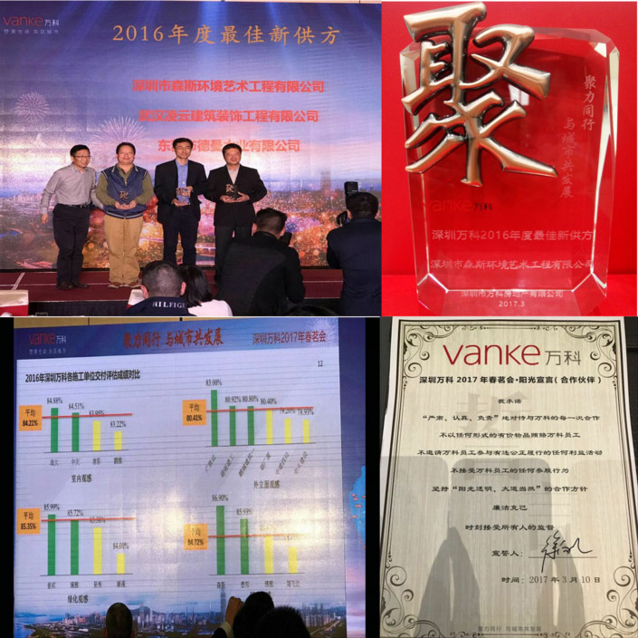 在“深圳萬科2017年春茗會”暨 “2016年深圳萬科各施工單位交付評估”成績中,深圳市森斯環境藝術工程有限公司以86.9%的高成績在眾參會施工單位中排名第一,成為萬科地產2016年度最佳新供方。