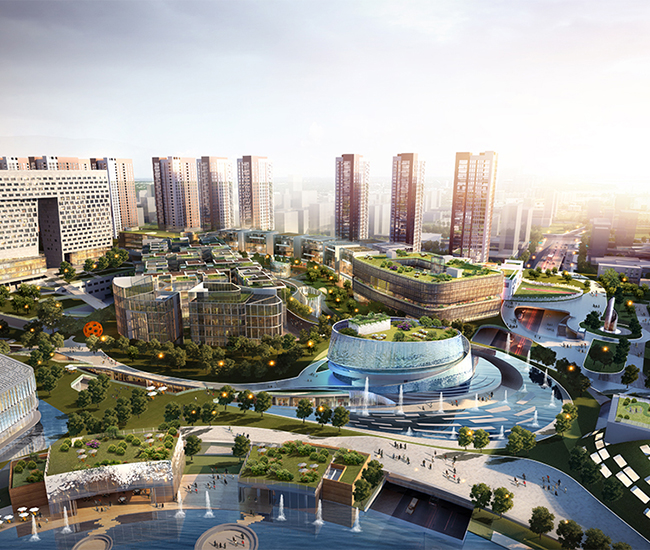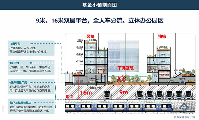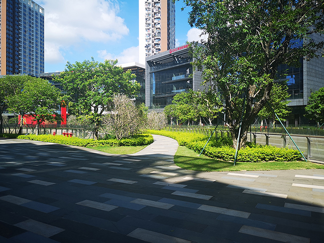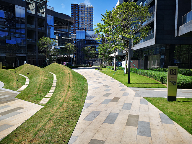 從園林景觀工程的層面來說,處在地鐵前海車輛段上蓋的本項目的場地條件非常特殊,它在包含了一系列復雜的豎向設計和交通組織要求的同時,還必須做到符合基金小鎮打造財富精英生活圈的理念,并且與當前國家建設海綿城市的方針政策相協調。