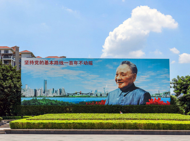 ? 聳立在深圳深南大道北荔枝公園東南出口的鄧小平巨幅畫像,建于一九九二年六月二十八日,畫像高十米,寬三十米,畫像前鮮花常艷,綠草常青。據(jù)有關(guān)方面統(tǒng)計,每年大約有百萬以上游人來此與這位世紀偉人“合影留念”。