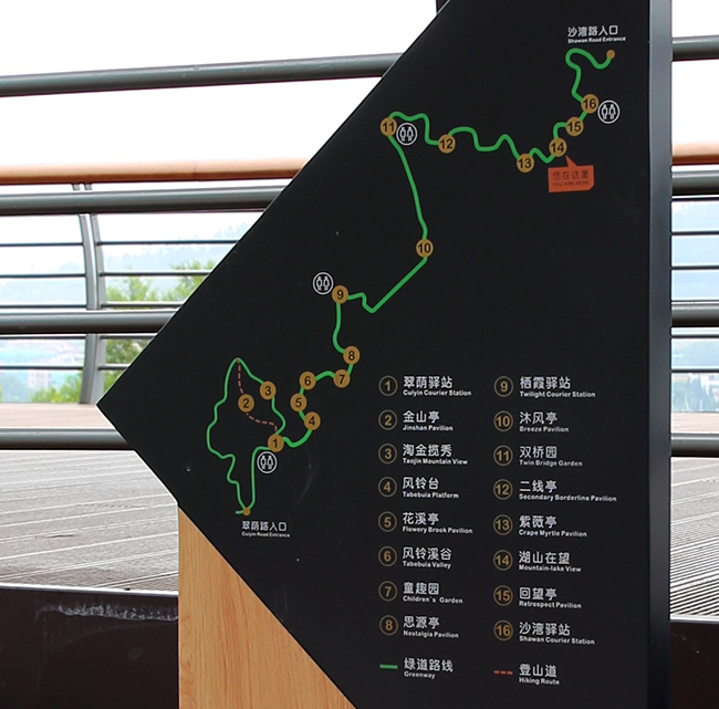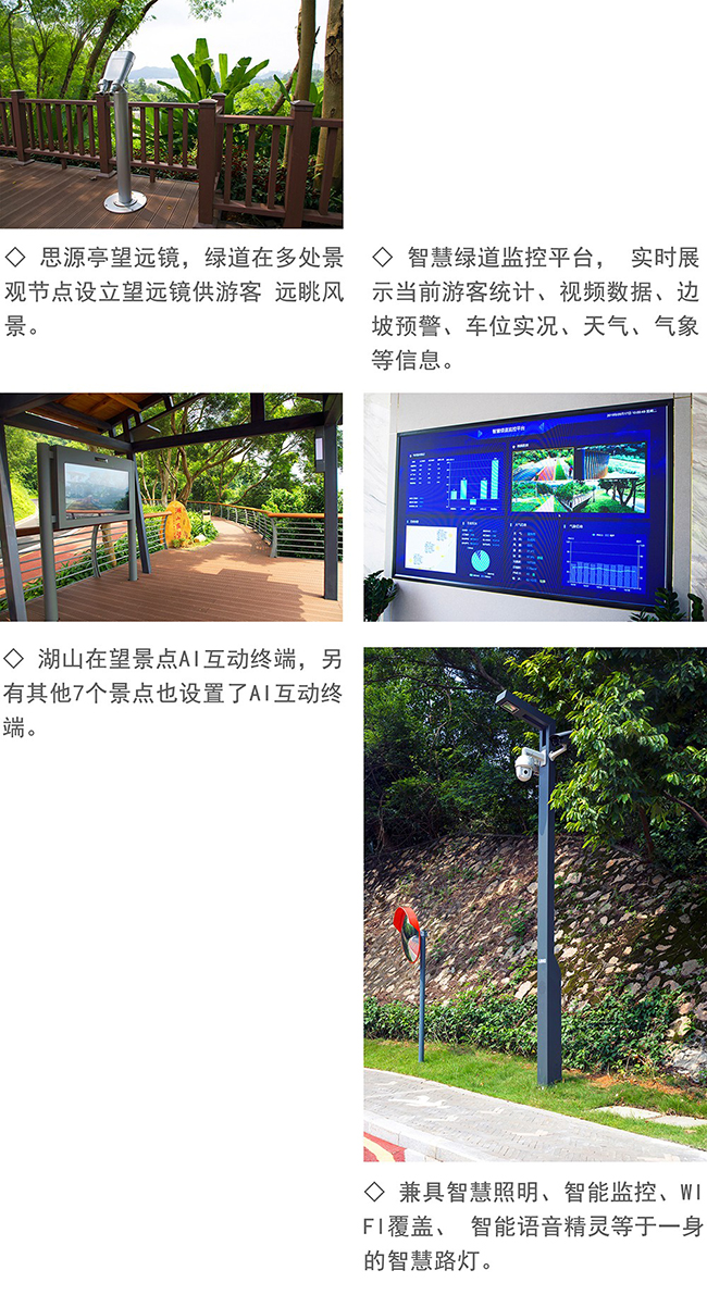 “該綠道以梧桐山山水生態(tài)環(huán)境體驗為中心,以“精致”“野趣”為出發(fā)點和立足點,結(jié)合物聯(lián)網(wǎng)停車管理、智能導(dǎo)行、智慧照明等系統(tǒng)建設(shè)智慧型綠道,通過雨水種植池、滲透性鋪裝、濾水草帶、景觀洼地等一系列雨水鏈設(shè)計建設(shè)海綿型綠道,延續(xù)梧桐山生態(tài)環(huán)境,構(gòu)建完整的綠色廊道。”