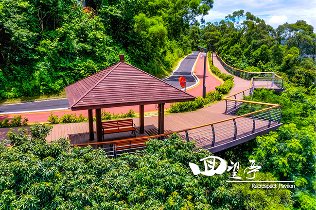 ? 這里是湖山在望往后綠道的轉(zhuǎn)角點,湖山在望風(fēng)景優(yōu)美,令人流連忘返,故名回望亭。