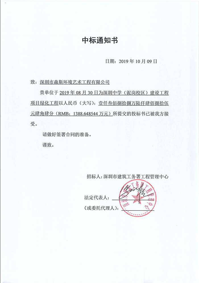 恭喜森斯環(huán)境中標(biāo)深圳中學(xué)(泥崗校區(qū))項(xiàng)目建設(shè)工程綠化工程。