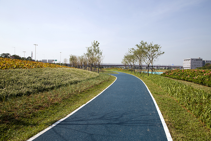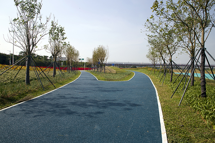 優美流暢的自行車道,起伏自然的藝術堆坡,現在我們可以從這里看到這樣賞心悅目的風景,這風景將變化,將生長,它是走向未來的。本項目能夠取得這樣優質的施工效果,作為先行示范段,無疑將為整個深圳寶安國際機場門戶地區城市環境品質提升工程奠定基礎,打開局面。