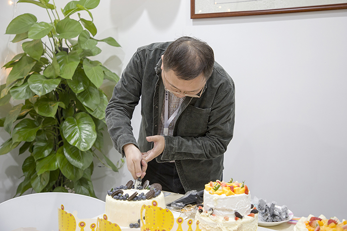 生日會現場張燈結彩,喜氣洋洋,5位冬季壽星戴上壽星王冠,在歡聲笑語中走上前臺接受大家的生日祝福。