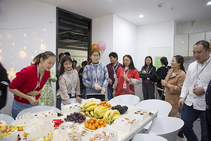 甜美的生日蛋糕,豐盛的水果及花樣繁多的糕點零食……雖然冬日有些涼意,但在森斯環境員工之家的“家人們”歡聲笑語,倍感溫馨!~