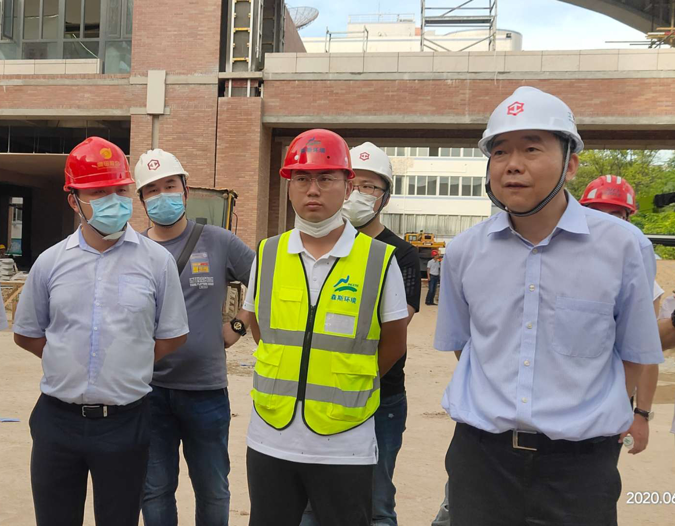 生產經理黃河清連日奮戰在一線,精心監督指導每一處施工,與工人們并肩作戰,為莘莘學子在開學季的到來建造最美校園!