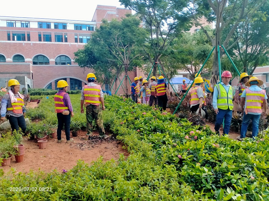 本工程位于深圳市羅湖區泥崗西路1068號(深圳信息學院原校址),建筑面積為163772平方米,工程內容包括校園區域及河道堤岸紅線范圍內綠化種植工程兩部分。校園區域綠化面積包含地面及屋面綠化,主要施工包含種植土回填、苗木種植、養護管理等內容。