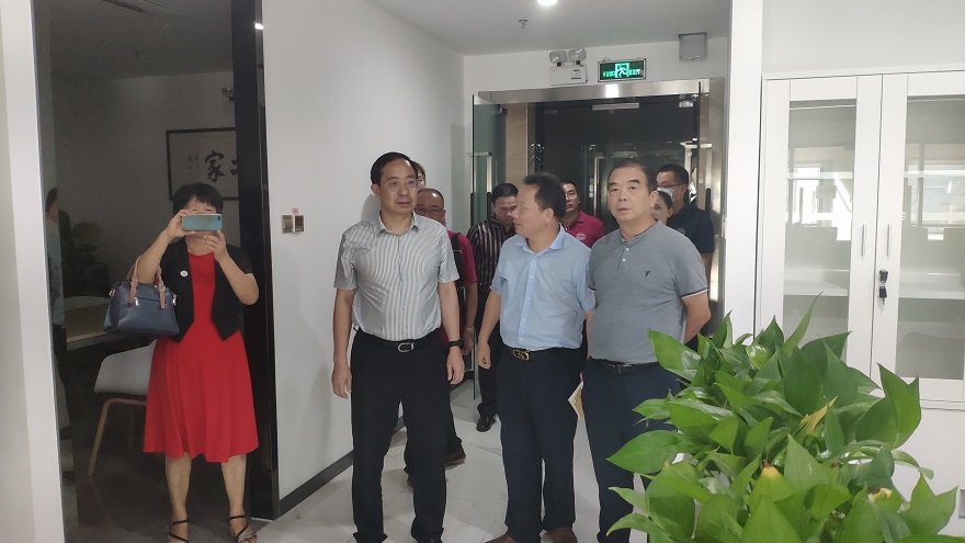 森斯環境公司董事長徐向明陪同華南農業大學黨委書記王斌偉一行參觀辦公環境,黨委書記王斌偉對公司宏大的規模與舒適的辦公環境,以及碩果累累的項目業績表示很贊賞。