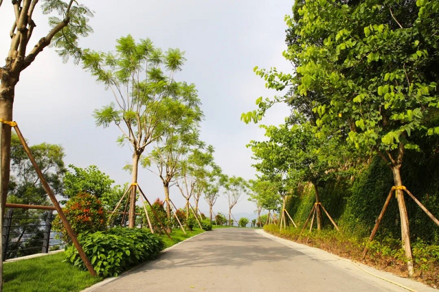 況:該綠化工程路段由深圳市森斯環境藝術工程有限公司和杭州G20團隊共同施工設計,是光明大道的主要景觀節點,長約2.5公里。