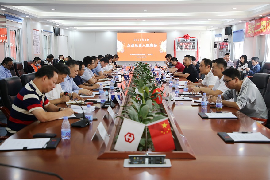 2021年4月30日,深圳大學西麗校區建設工程(二期)項目第4次施工單位企業負責人聯席會暨2021年4月份表彰會議在深大西麗二期工務署項目部一樓大會議室正式召開,會議由浙江江南工程管理股份有限公司項目經理曹冬兵主持,深圳市建筑工務署督導處調研員劉遠慶、工程一部部長兼項目主任劉峰,深圳市森斯環境藝術工程有限公司(簡稱森斯環境)董事長徐向明、設計院副院長傅杉,中建一局(集團)有限公司華南地區副總經理叢小東等各參建單位領導與項目負責人列席參會。