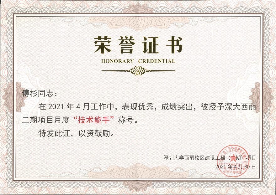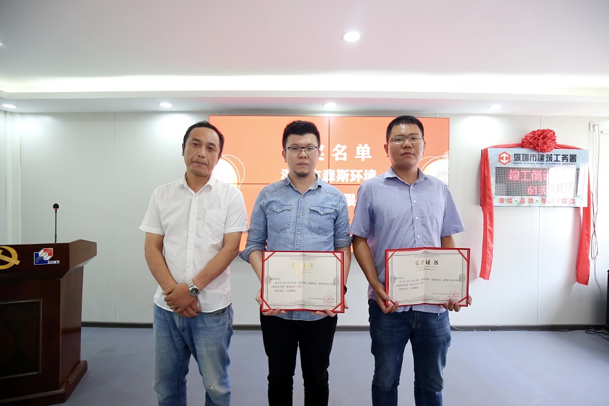 此次會議主要陳述深圳大學西麗校區建設工程(二期)項目的工作進度,同時表彰在項目建設中涌現出來的優秀單位和先進個人,總結成功經驗,以切實營造積極奮進的濃厚氛圍,激勵各大參建單位進一步增強工作的責任感和使命感,攻堅克難,勤力同心,為深圳大學西麗校區建設工程(二期)項目如期完工交付一份滿意的答卷!表彰大會上,共頒發“優秀個人”、“技術能手”、“優秀班組”、“特殊貢獻獎”、“優秀團隊”五項獎項,其中森斯環境榮獲四項。見縫插針,快中求精的施工組織及態度受到建管方的一致肯定。