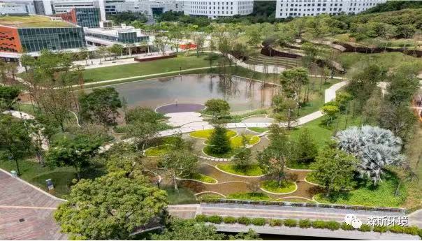 南方科技大學位于深圳市南山西麗片區,依山傍水,具有獨特的自然環境。本次改造提升區域為南科大活動中心后區,面積約20000平米,其中水體面積近3700平米,場地與周圍建筑緊密咬合,形成山水嵌入式空間格局。