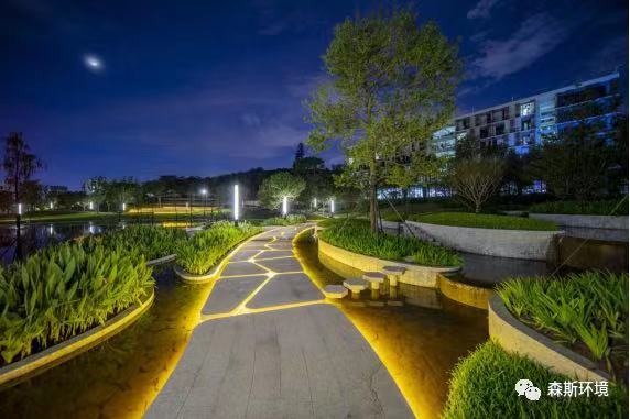 5)平緩柔和的跌級水景樹林,成為學子晨讀圣地。