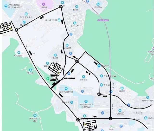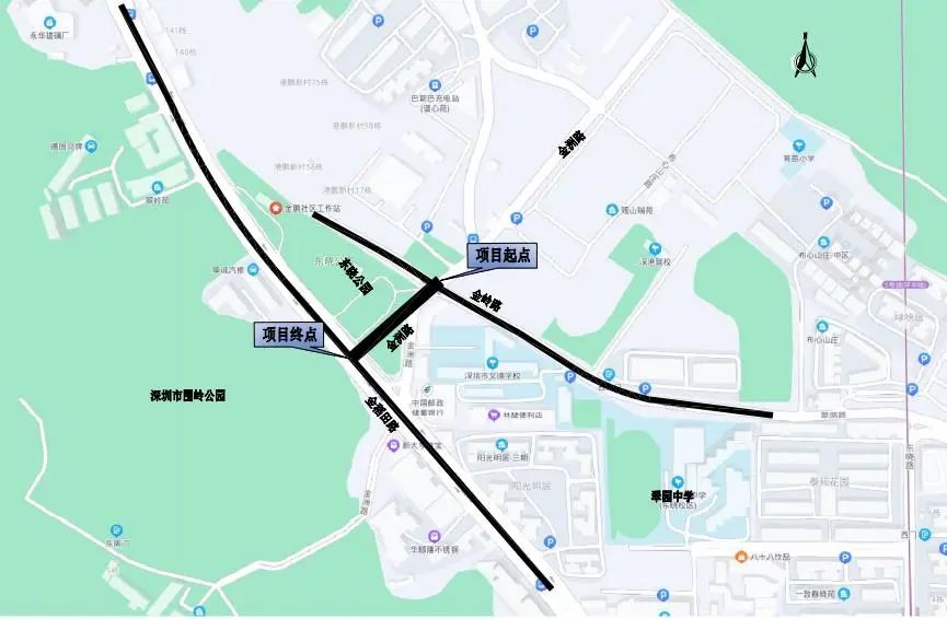 溫馨提示:考慮本項目新建長度較短,施工難度較易,工期較短,故新建段采用全封閉施工,須由項目范圍現狀金洲路進入該片區車輛,可通過現狀東湖路-現狀翠蔭路-金嶺一路-金洲路繞行。