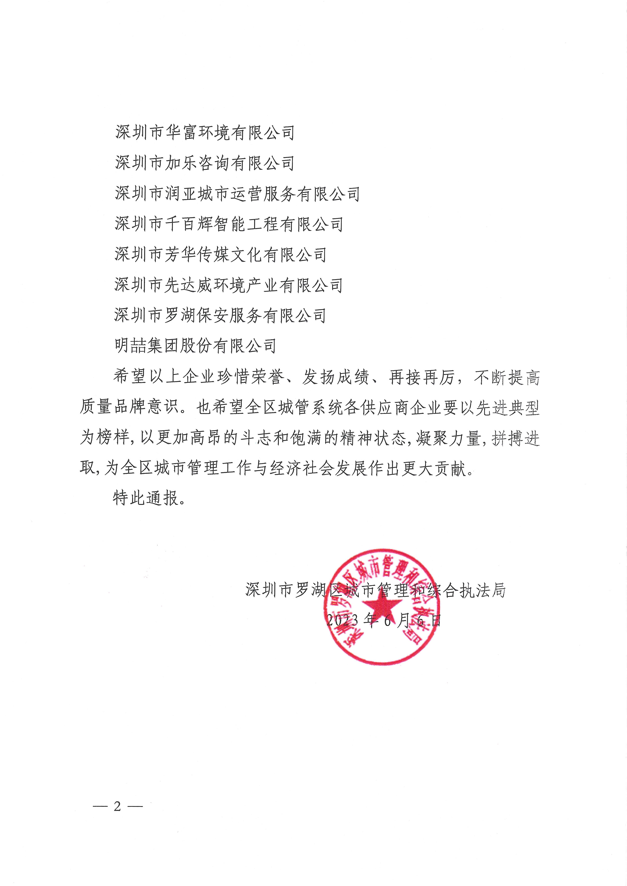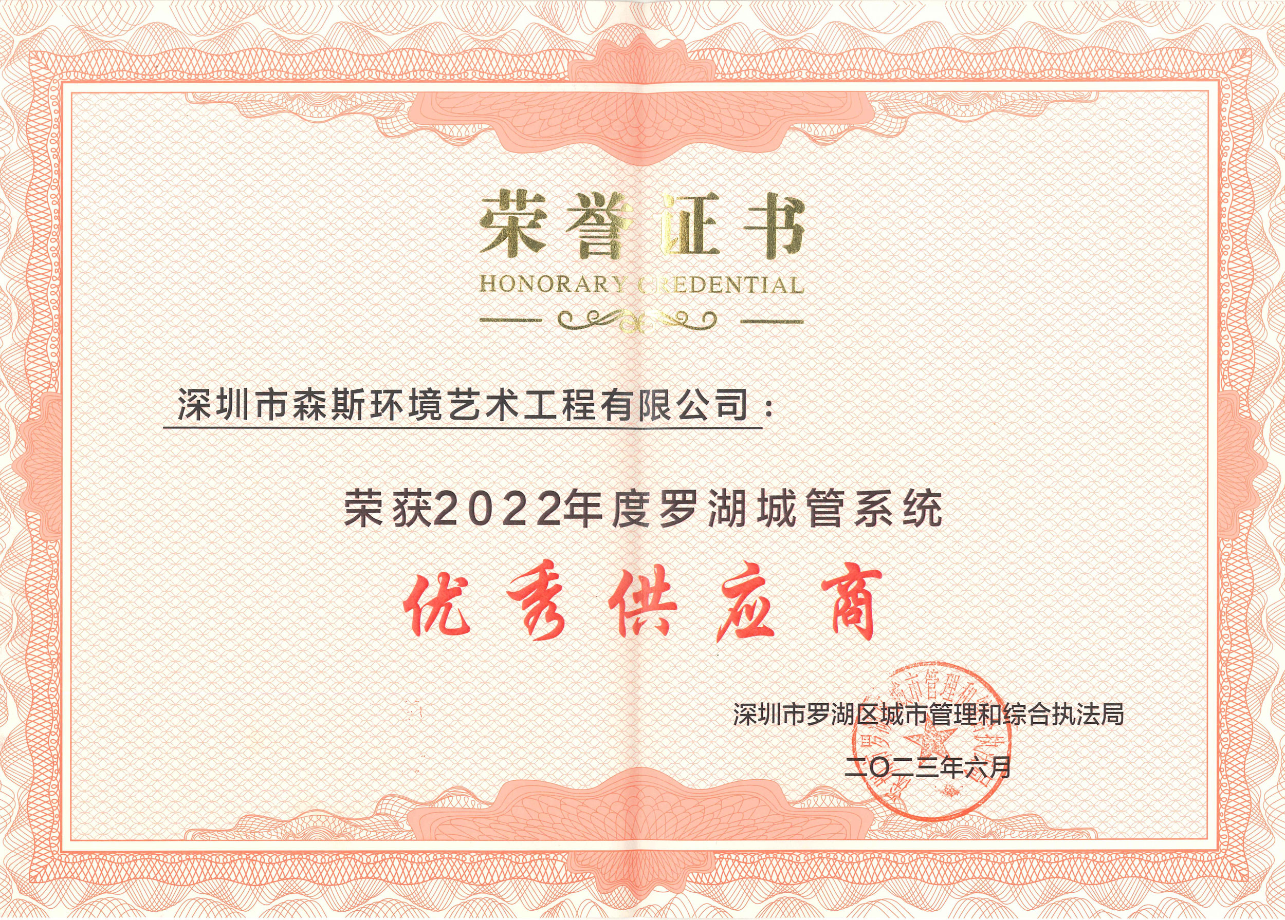 喜訊 | 我司榮獲2022年度羅湖城管系統“優秀供應商”稱號!
