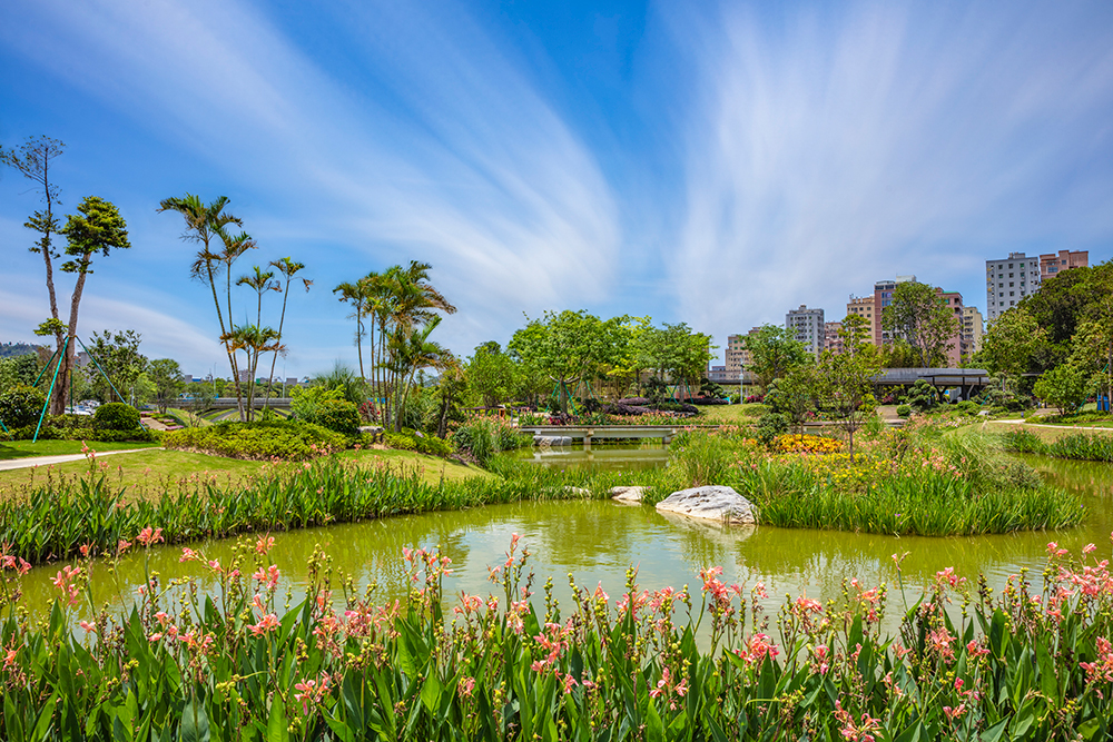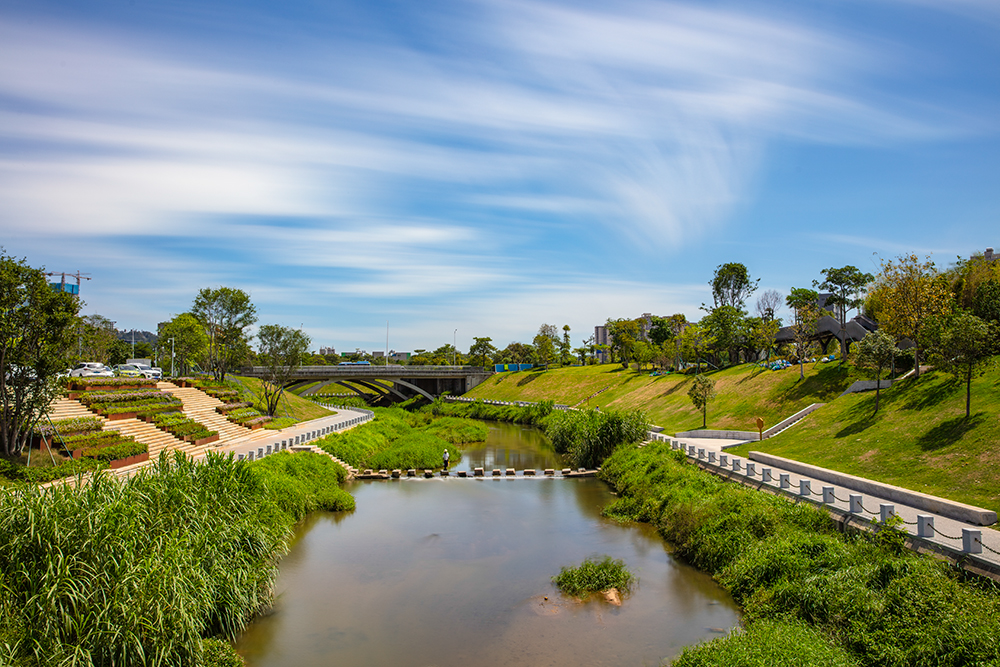 本項目長14.6公里,景觀面積91.3公頃,是集設計、采購、施工為一體的大型河道景觀綜合整治工程。主要景觀節點有茅洲之源、同觀濕地、茅洲畫卷、東坑橋、休閑運動場地、橋底體育運動公園等,是以高水平設計、高標準施工打造的光明區“生態脊梁”,是集水清、岸綠、景美于一體的茅洲河綠色生態長廊,為周邊居民提供了優質的休閑漫步空間。