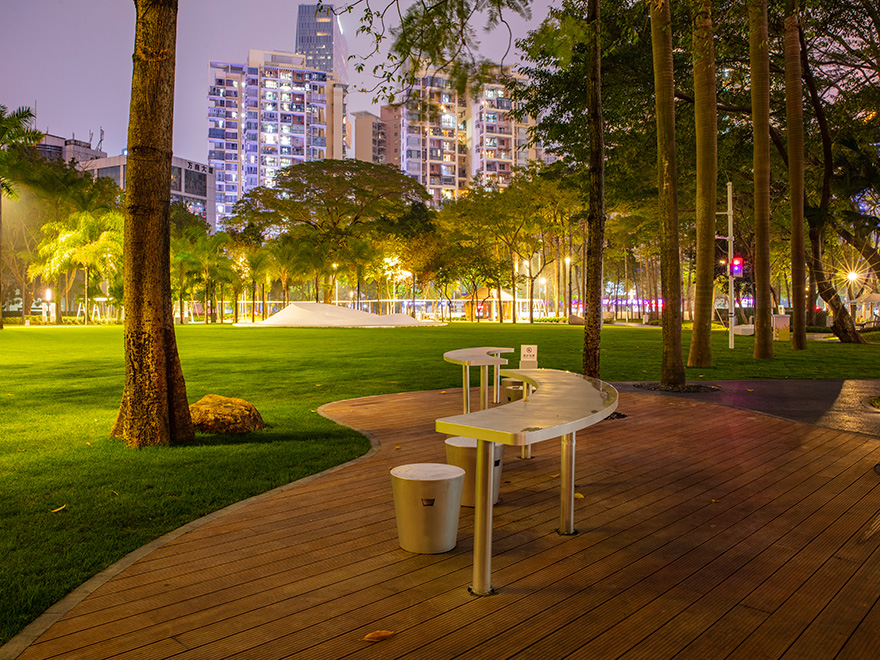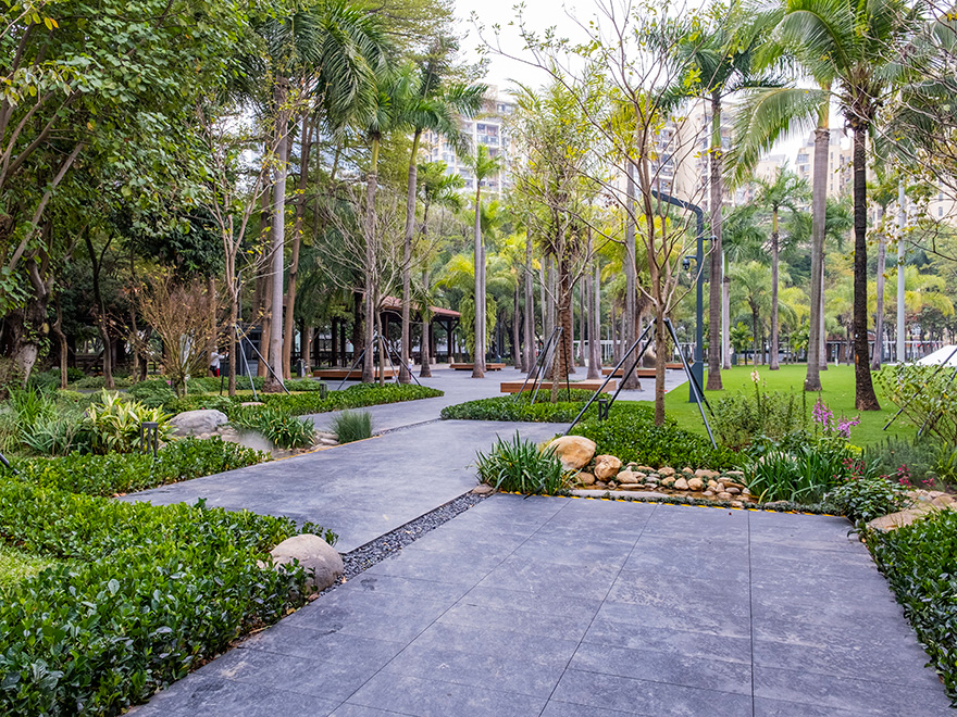 本項目為深圳市南山區(qū)城管綜合執(zhí)法局公園改造工程,面積2.7萬平方米,保留了全園喬木,并延續(xù)南海大道喬木花林;塑造可進入、活動豐富的無界大草坪,連接書城與園區(qū),營造文化客廳,疏林草地的開敞氛圍,簡潔、疏朗、通透、大氣;在各入口處,配置了植物品種多樣、層次豐富的花境,以自然斑駁的形式種植,在株高、色彩和季相上達到自然和諧,滿足都市人們回歸自然的期望。